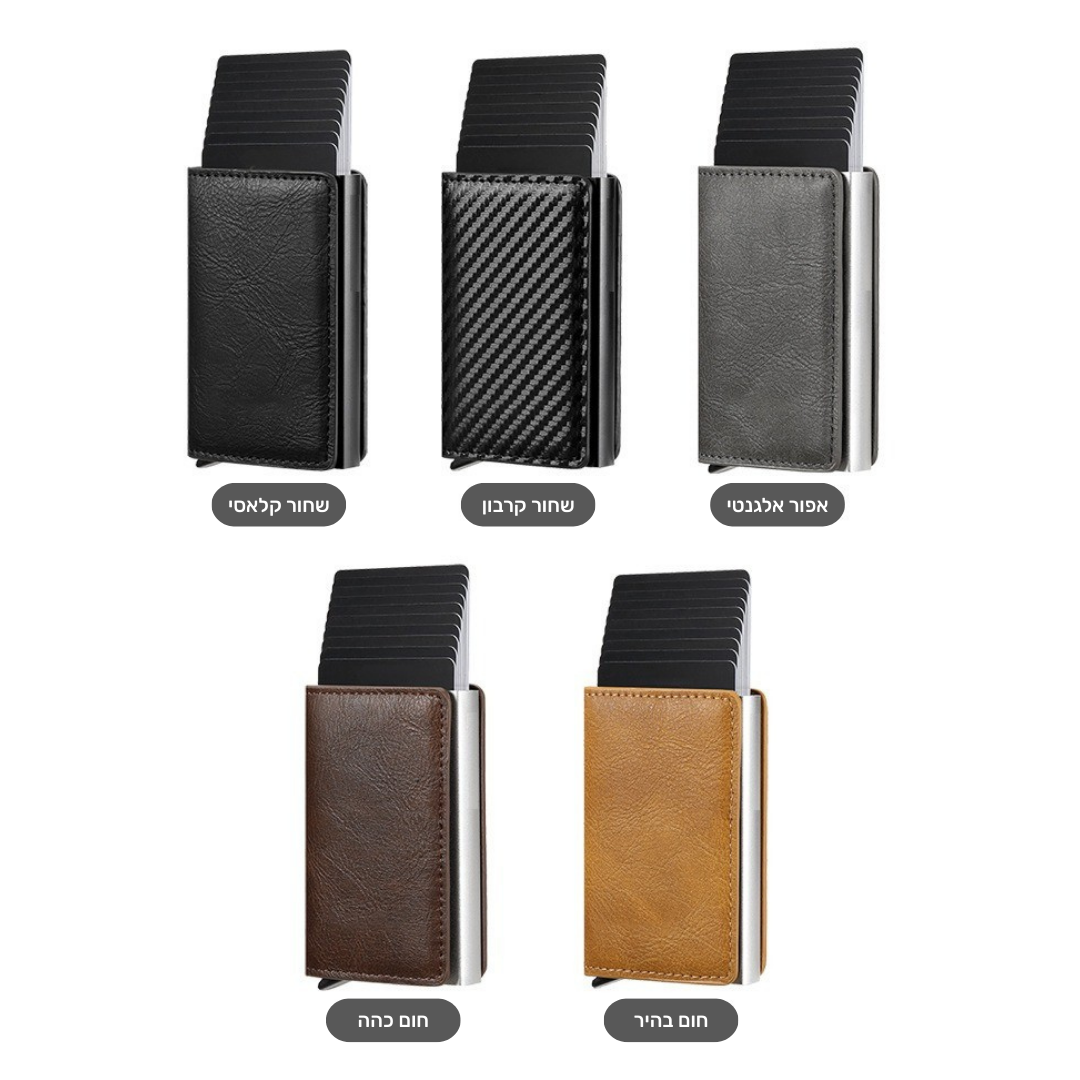 הארנק נגד גניבות של Vareonn™ נועד להחזיר שליטה: שליפה מהירה בלחיצה אחת, סדר קבוע לכרטיסים והגנה שקטה על הפרטיות שלך. הוא דק, נוח לכיס קדמי, עשוי חומרים איכותיים ומלווה אותך ביומיום, בעבודה ובנסיעות בלי להתעסק, בלי לחשוב, פשוט עובד.