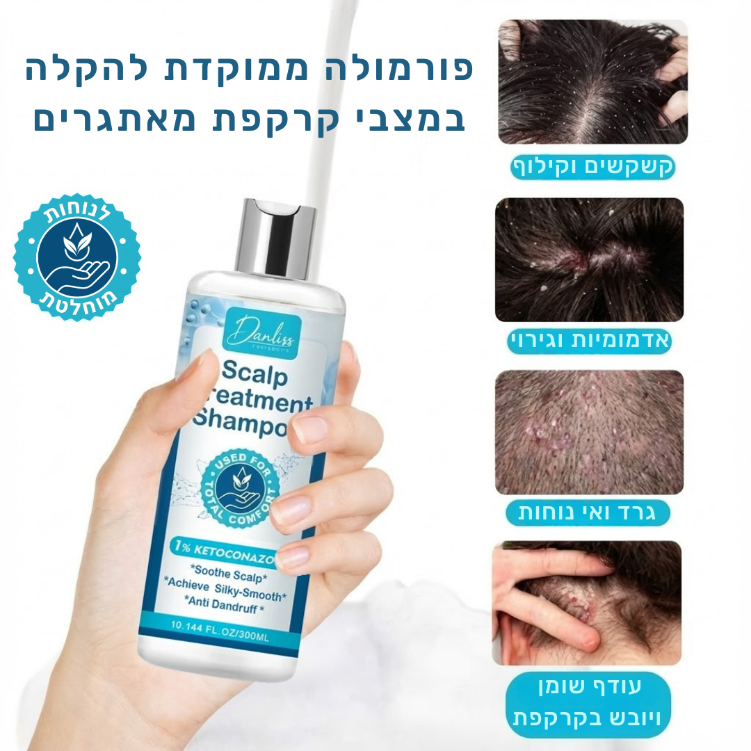 שמפו ייעודי לטיפול בקרקפת הסובלת מקשקשים, קילוף וגירוי.