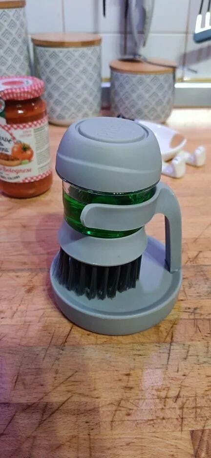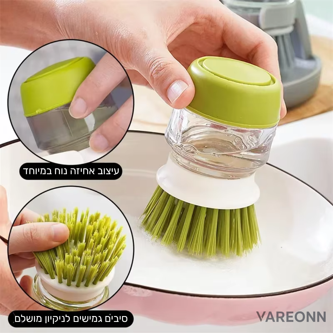 מברשת הכלים עם מיכל סבון מובנה שתהפוך כל שטיפה לחוויה פשוטה ונעימה. ממלאים סבון, לוחצים בעדינות ומנקים כל סוג משטח במהירות וללא מאמץ